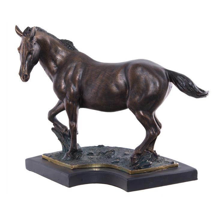 A striking equestrian sculpture that commands attention in any room. This 41cm horse mounted on a plinth brings timeless elegance and sophisticated style to your interior. Perfect for collectors and design enthusiasts seeking a statement piece that celebrates the beauty and grace of these majestic animals. An investment in refined home décor.