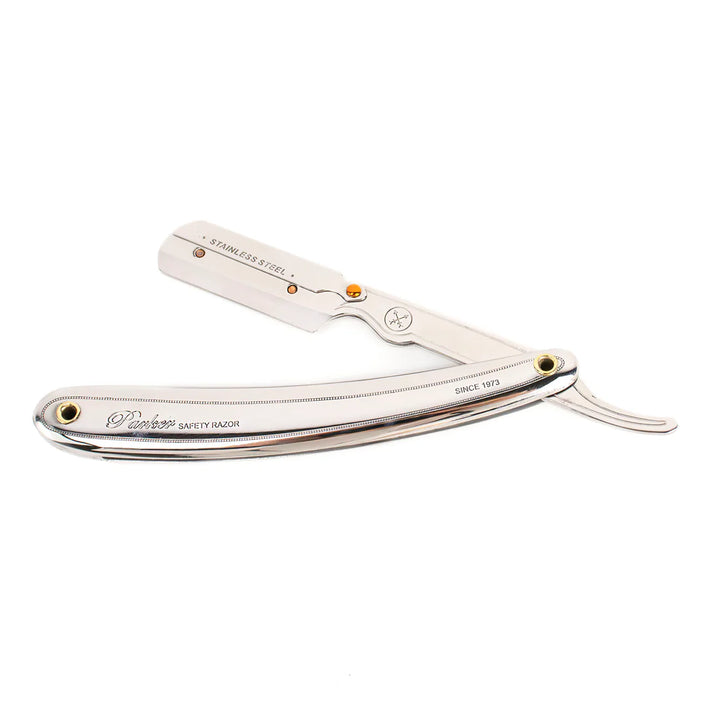Experience the precision and reliability that professionals demand. The Parker SR1 combines a distinctive clip-closure design with a fully stainless steel construction, delivering durability that rivals traditional straight razors. Simply load a halved double-edged blade and enjoy exceptional cutting performance without the maintenance hassle—no honing or stropping required. Trusted by barbers and shaving enthusiasts worldwide, this shavette offers the authentic straight razor experience with modern convenience and ease of use.