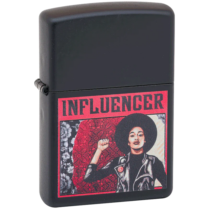 Capture the spirit of the digital age with this influencer-inspired design set against a sleek matte black Zippo lighter. Perfect for those who value style and connection.